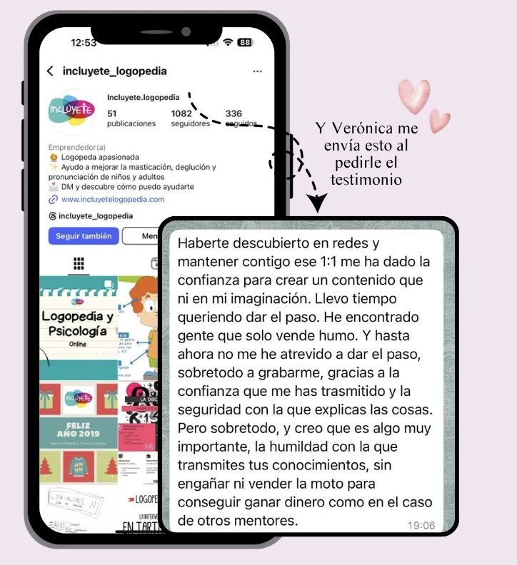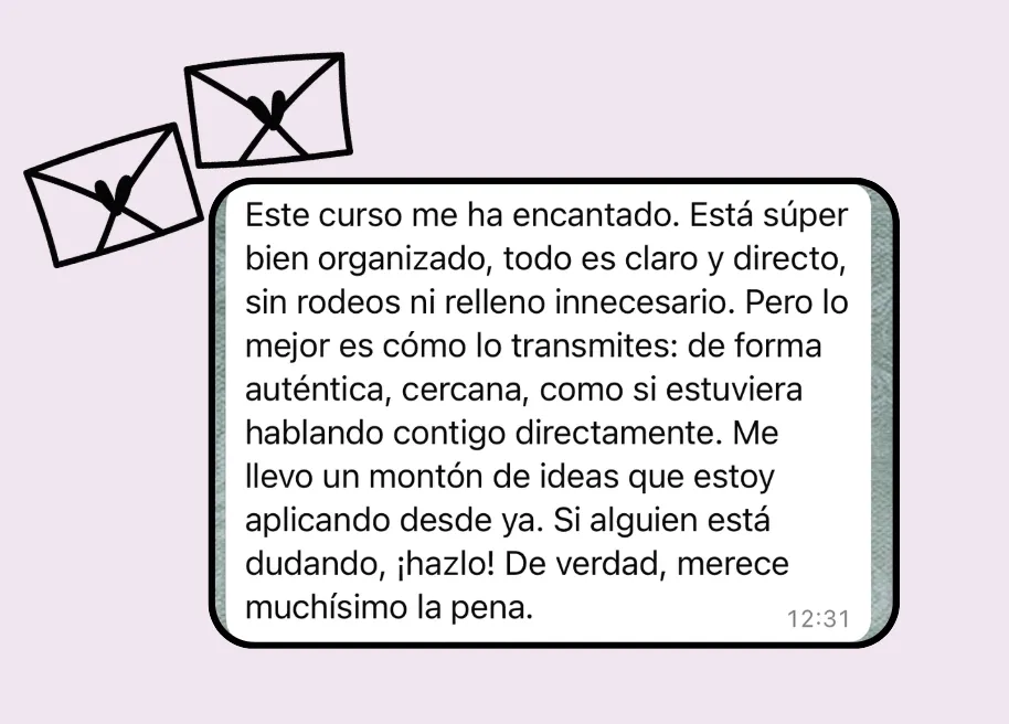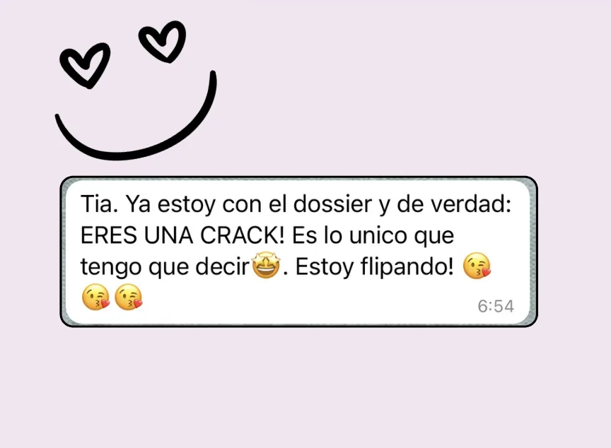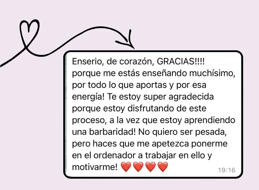 ¿Quieres que tras la asesoría estemos 4 semanas juntas, con un acompañamiento individual diario a través de Whatsapp donde me vas a poder preguntar cualquier duda que te surja y te acompañe mientras estás implementando todo lo aprendido en la asesoría y no te sientas sola?